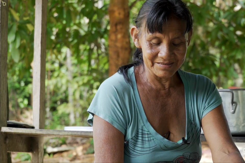 Dona Rosa da aldeia de Balaio ensina como fazer bolinhas de tapioca... e no processo, lembra a colonização da comida indígena nas últimas décadas.