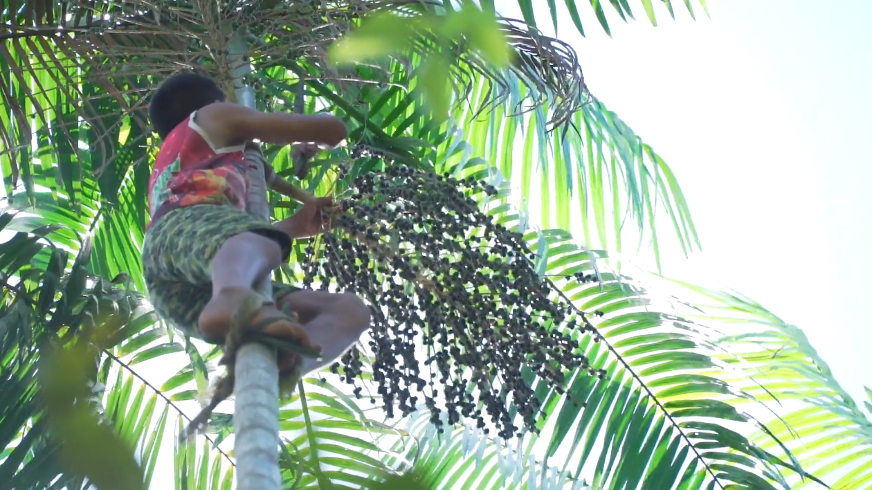 Andrey Araújo da Cosa, uma adolescente indígena de São Gabriel da Cachoeira, Amazonas, ensina como fazer açaí, desde a árvore até o copo.